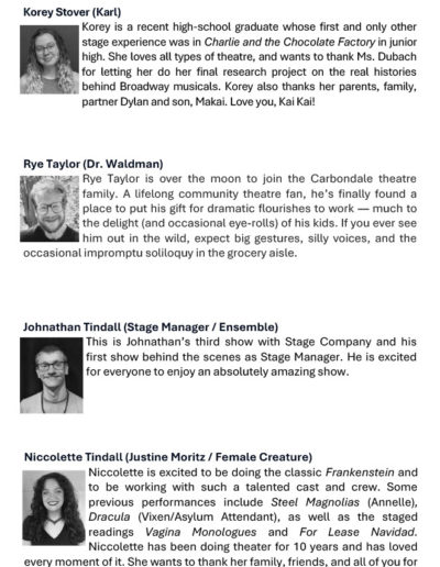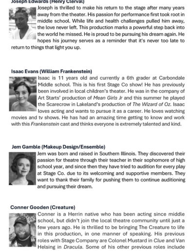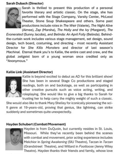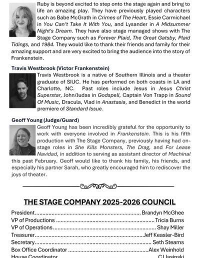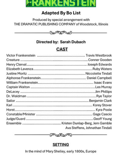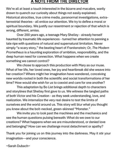 In this adaptation of Mary Shelley’s classic novel, Victor Frankenstein becomes obsessed with conquering death and creates a living being from the bodies of the dead. But the creature he brings to life is rejected and left to fend for itself, ultimately confronting its creator in a powerful exploration of humanity, isolation, and responsibility. This adaptation focuses on the emotional and moral consequences of creation, with a streamlined cast and dialogue-driven storytelling.