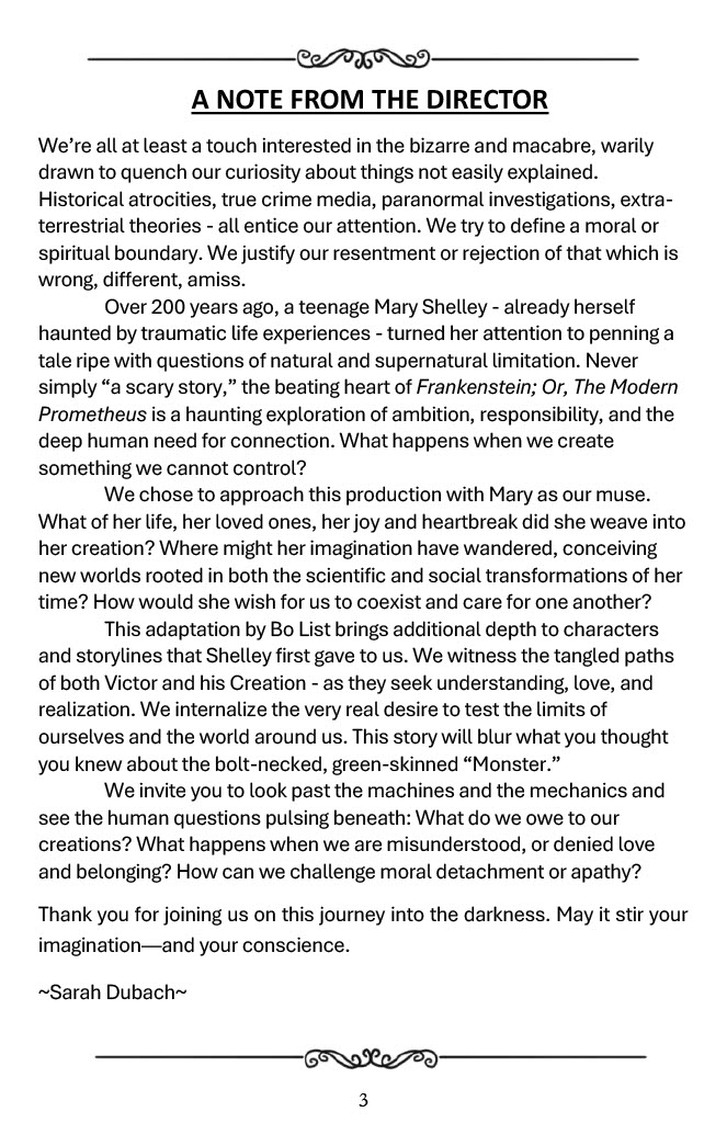 In this adaptation of Mary Shelley’s classic novel, Victor Frankenstein becomes obsessed with conquering death and creates a living being from the bodies of the dead. But the creature he brings to life is rejected and left to fend for itself, ultimately confronting its creator in a powerful exploration of humanity, isolation, and responsibility. This adaptation focuses on the emotional and moral consequences of creation, with a streamlined cast and dialogue-driven storytelling.